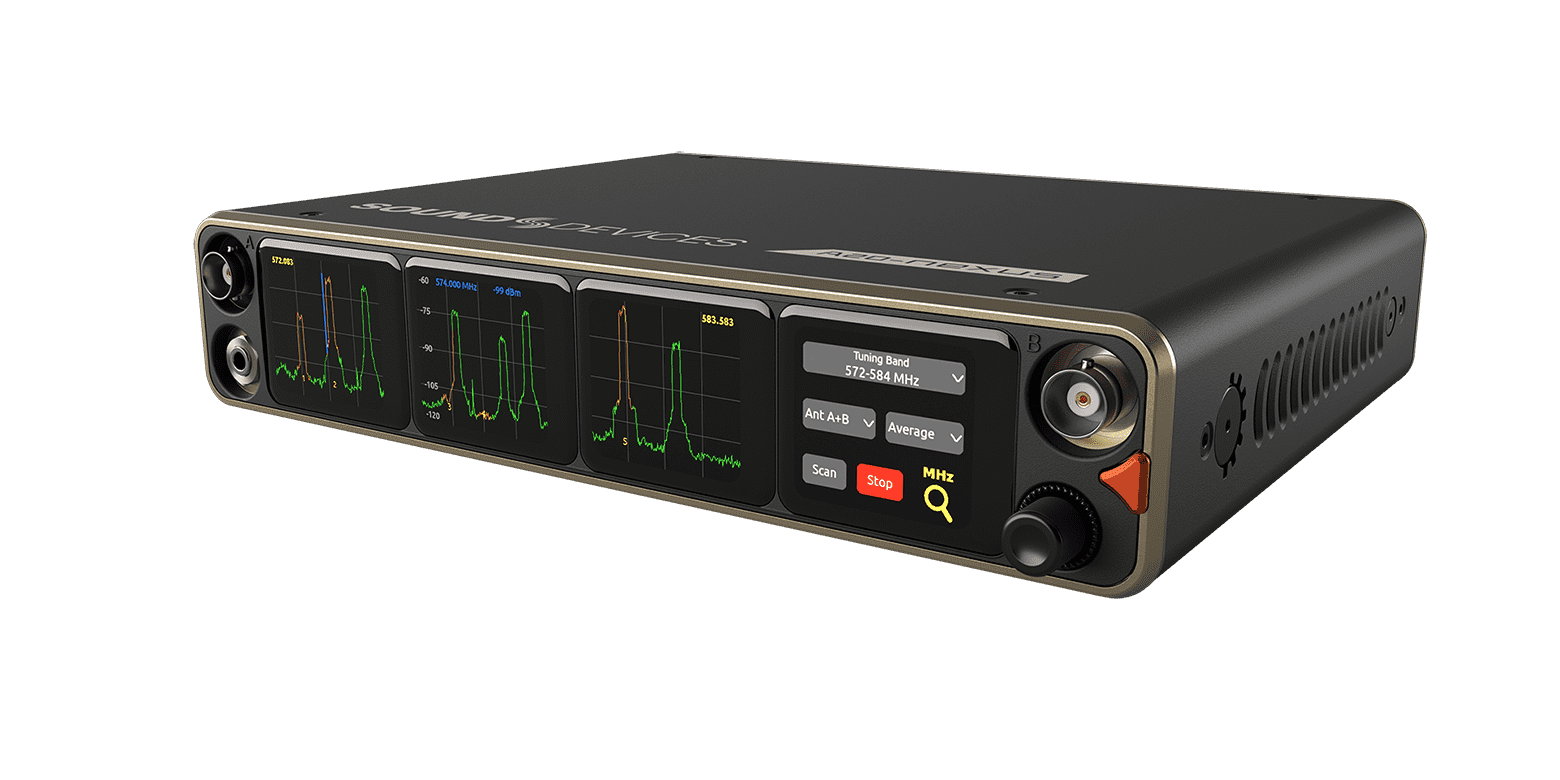 The days of waiting for a frequency scan to complete are over. Instantly visualize the fluctuating RF spectrum around you in real time – while running all channels of the audio.