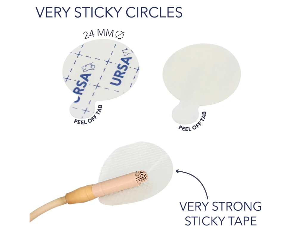 They are 24mm diameter pre-cut stickies with peel-off tabs. URSA Very Stickies are also sold with the URSA WireRig for securing this rig onto almost any surface.